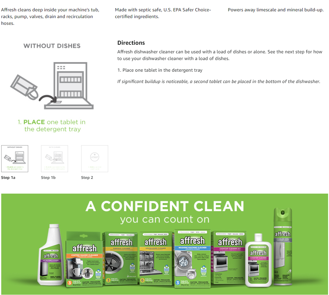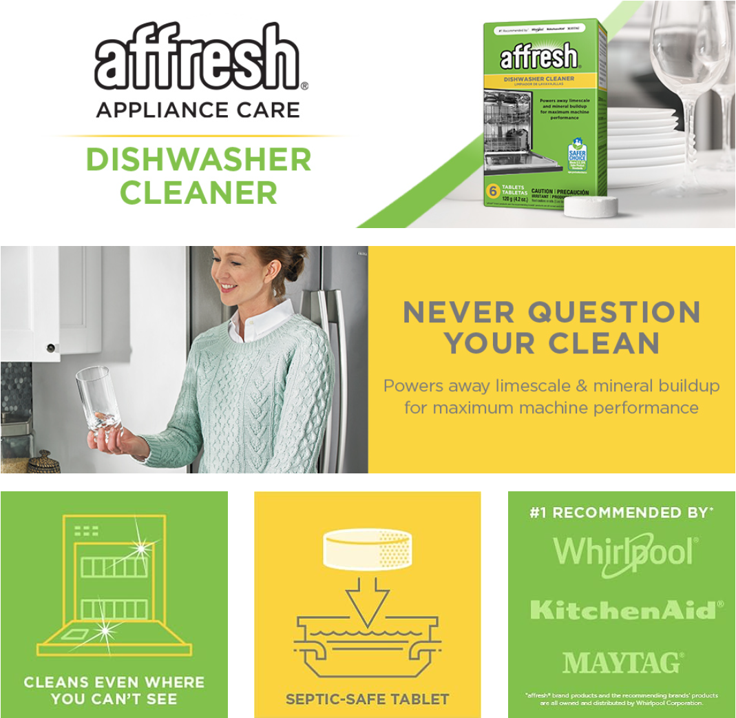 - No.1 Recommended by Whirlpool, KitchenAid, Maytag and Amana brands (affresh brand products and the recommending brands' products are all owned and distributed by Whirlpool Corporation)