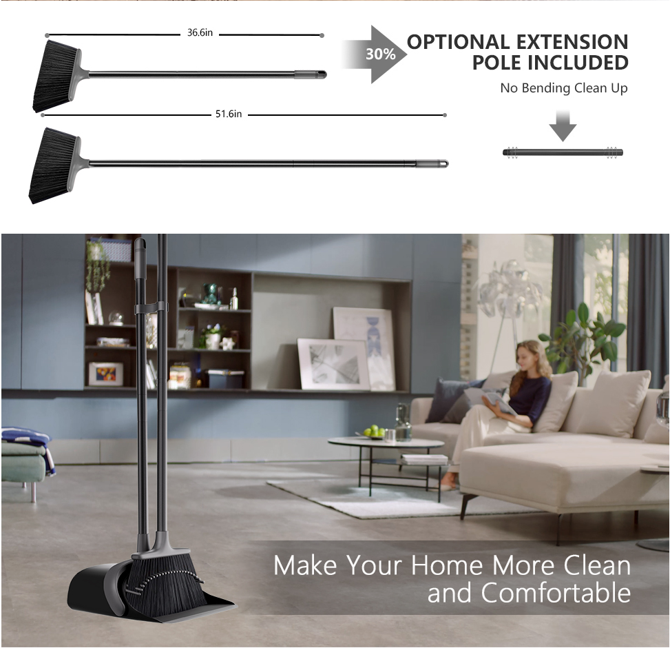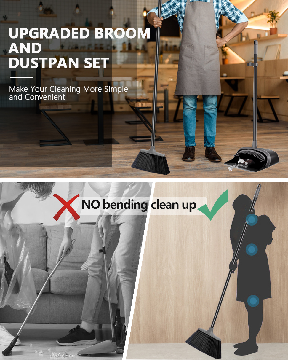 - Long Handle Broom and Dustpan Set: The broom and dustpan set for home is upgraded with a 52’’ long broom handle, no bend over, allows you to choose the appropriate length of the broom and dustpan set for comfortable cleaning.
