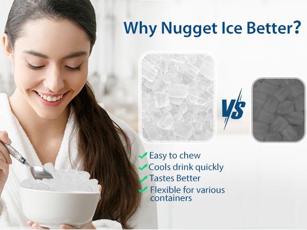 【Enjoy clean nugget ice with self-cleaning 】Simply press 'ON/OFF' button for 5 seconds to enter cleaning mode, saving you time and effort in cleaning. There is a convenient bottom plug for quick and easy drainage, perfect for busy kitchens or events.