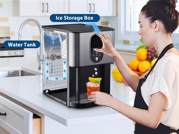 【Easy to Operate& Smart indicator lights 】With COWSAR Chewable Pellet Ice Machine, you can make Good Taste, Soft, Chewy ice easily at a press of the ON button. No plumbing or installation required. With an easy-to-use operation panel and smart indicator lights, the ice-making process can be easily monitored, ensuring hassle-free use.·