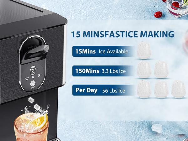 【No scoop needed which save time and effort 】Say goodbye to the messy ice scoop with Self Dispensing Ice Maker that drops ice cubes with just a pull of a wrench! COWSAR Nugget Ice Maker make ice efficiently, be ready for Ice available in 15mins and make 44 pounds ice in 24 hours, perfect for family party or office.·