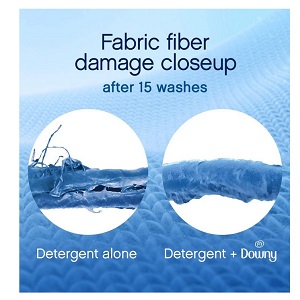 The agitation, spinning, and heat of the laundry process can damage clothes at the fiber level. But Downy Fabric Softener smooths and strengthens fibers to protect clothes from the damage of the wash, helping them maintain their shape. By smoothing fibers, Downy reduces the friction between them that causes them to break and leads to pills and fuzz. And when fibers break, colors appear duller, so using Downy also helps keep your clothes from fading.