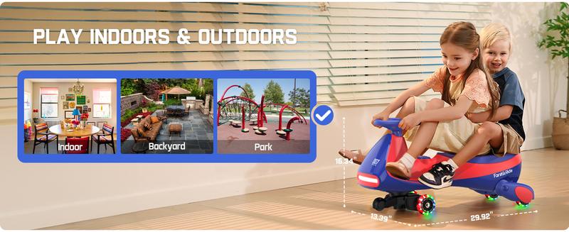 - Multiple music and cool lights: When you drive the twist car to glide, the bright headlights will guide you forward, and the magnetic flashing wheels will emit colorful lights. Luminous PU wheels, no battery required, wear-resistant and quiet, glide smoothly, and will not hurt the floor. One-click to turn on the built-in dynamic music, you can also freely adjust the volume and songs through Bluetooth to connect your phone, adding more fun to your child's driving experience!