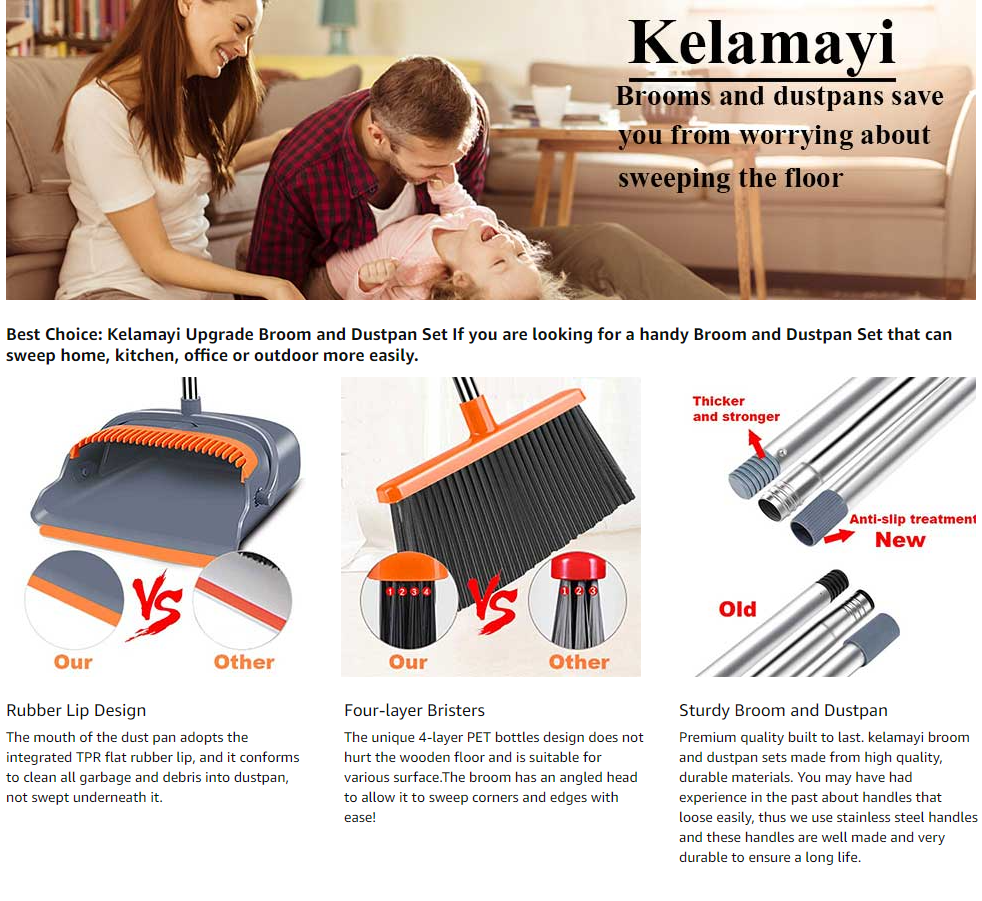 - [Heavy duty Broom bristles] - 2023 Upgraded four-row bristles design, high quality broom bristle construction, More dense and durable. Eco-friendly fiber made from recycled PET bottles. Kelamayi insists on working hard to protect the environment.