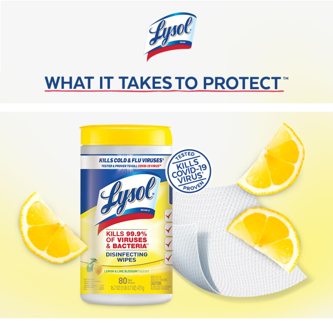 - DISINFECTING WIPES FOR CLEANING: Disinfect and deodorize with the fresh smell of Lemon and Lime Blossom Lysol Disinfecting Wipes. Safely wipe down spills and remove allergens, including pet dander, dust mites, and pollen.