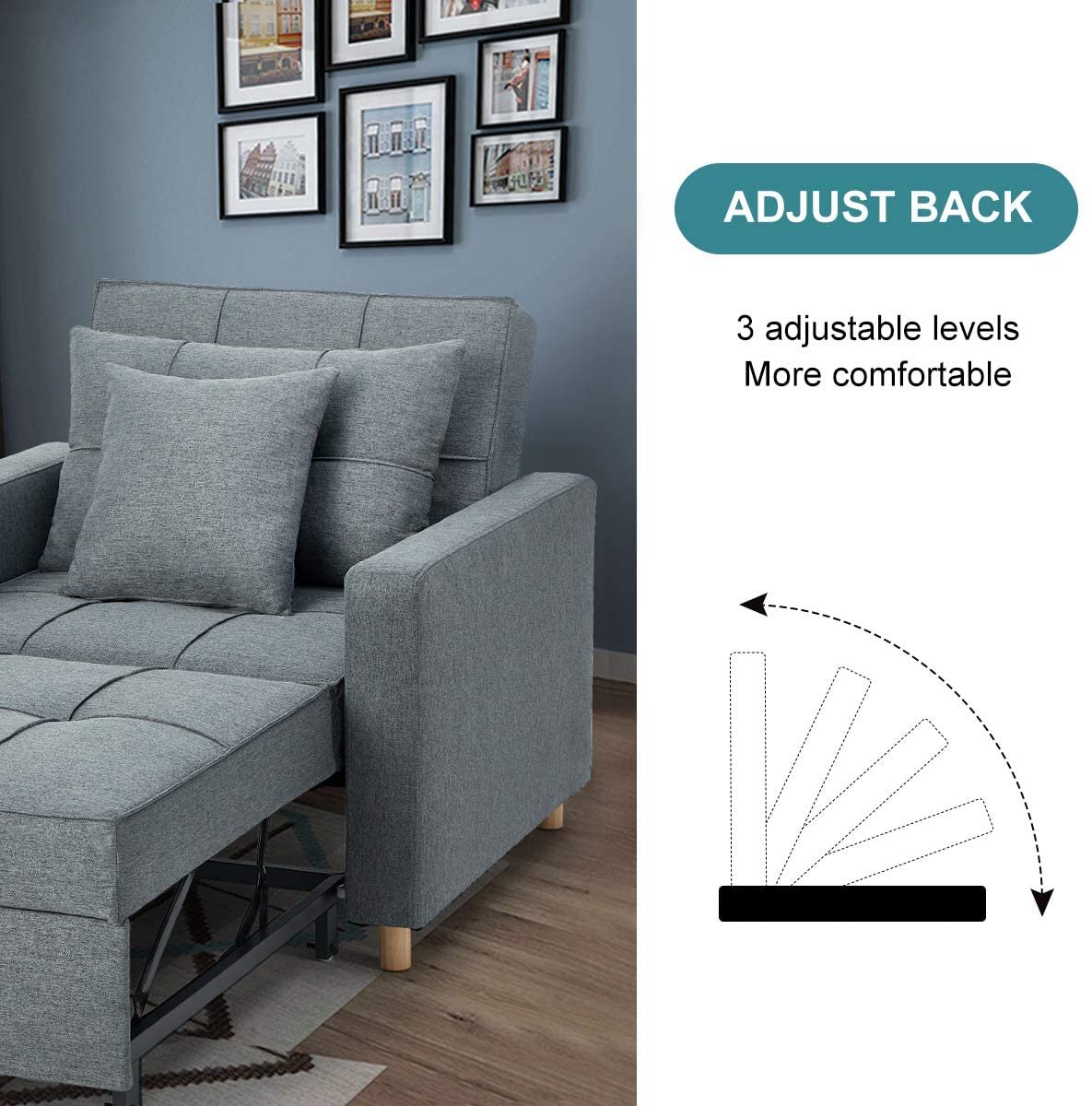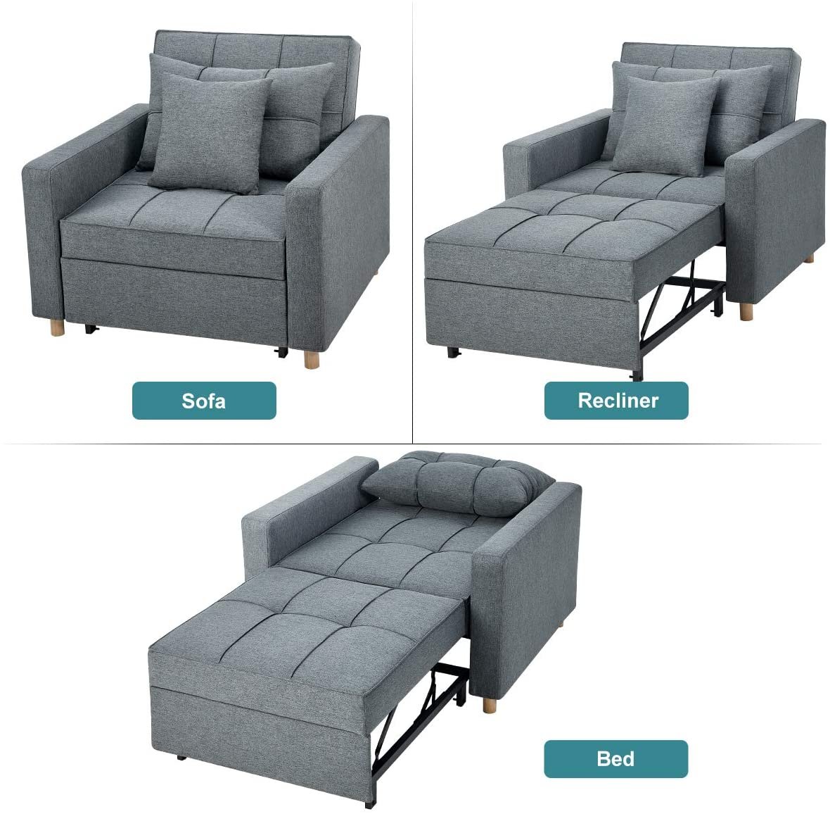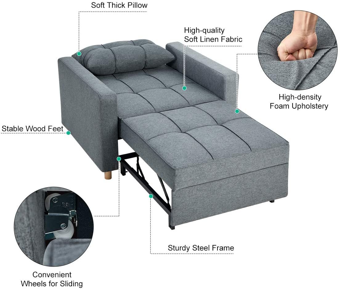 Sturdy Frame & Breathable Fabric: The convertible chair sleeper bed is made of high-quality steel frame, ensuring best durability in daily use and withstand 330 lbs. Breathable linen fabric and high-density foam upholstery give a soft feeling and excellent support.