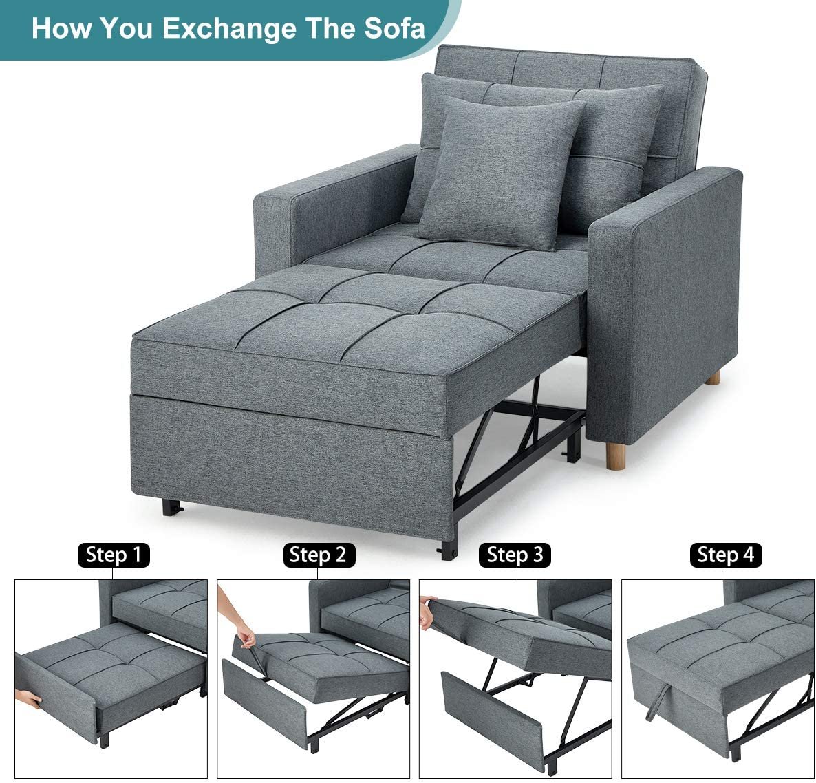 Buy-Buy with Confidence: The chair bed sleeper is easy to assemble with our clear manual instruction. If you have any questions about assembly or product quality, you can contact our customer service for help.
