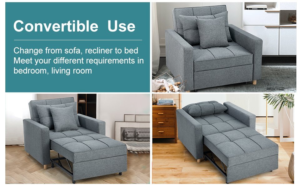 Suitable for Any Scene: The modern sofa sleeper chair has simple and stylish design, to fit your living room, dorm, apartment, bedroom or office with its compact size.
