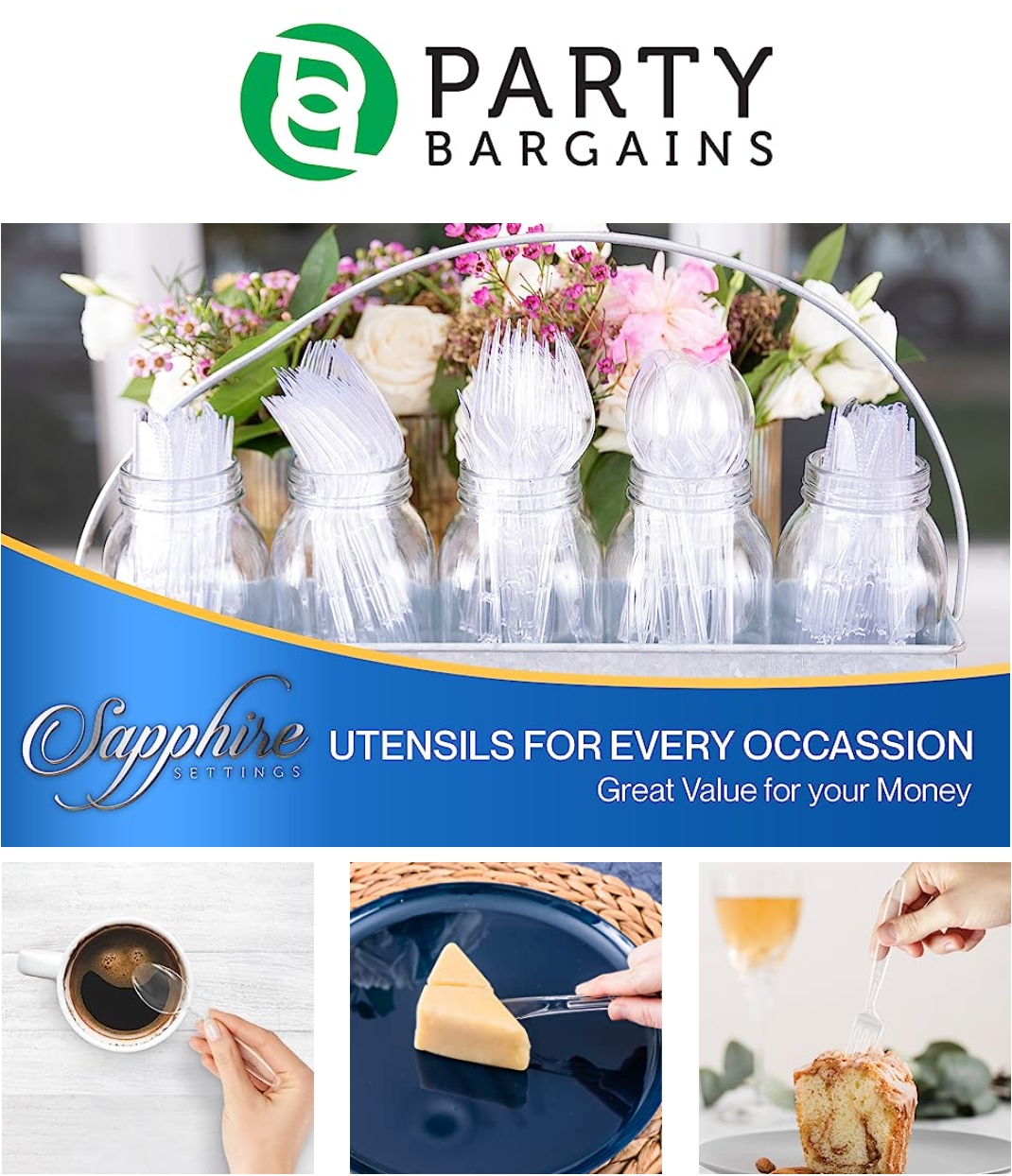 - ✅DURABLE: Heavy duty plasticware. Knives slice without breaking, strong forks spear food, spoons for hot or cold liquids.
